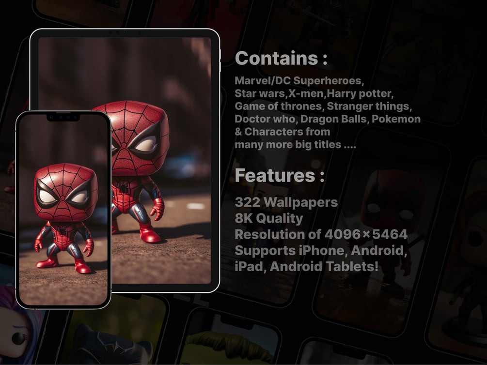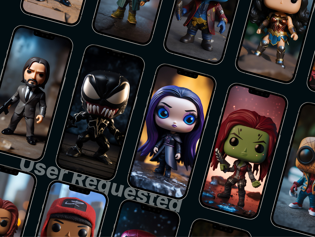 Bring your favorite characters to your Display on your iPhone or iPad with Pop Culture Funko Wallpapers! This pack features 322 unique collectible figures wallpapers inspired by popular characters from movies, TV shows, and video games, all recreated in Funko Pop! vinyl figure style. With a mix of iconic heroes, villains, and sidekicks, you're sure to find a wallpaper that suits your style. Whether you're a fan of Marvel, DC, Star Wars, Harry Potter, Game of Thrones, Dragon Balls, or classic Disney movies, this pack has got you covered. Download Funko Pop Collectible Figures Wallpaper Collection today and add some fun to your device!