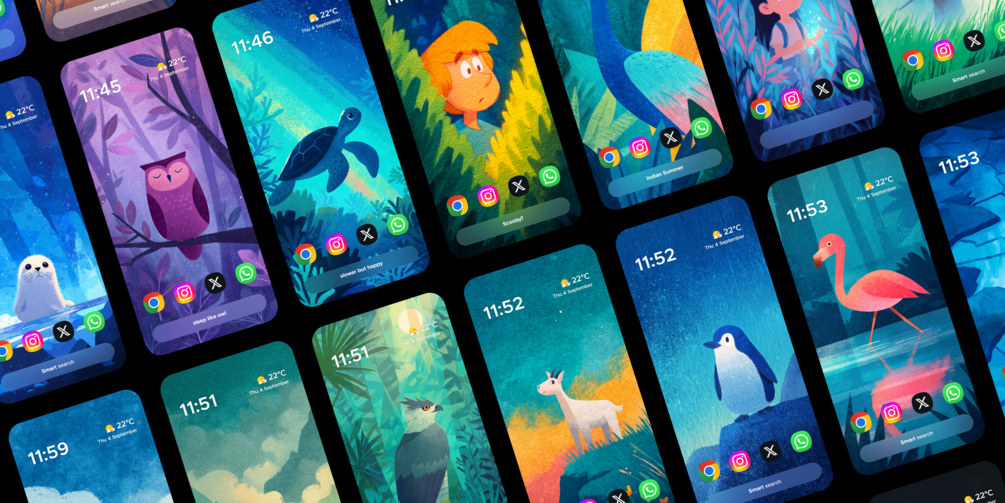 Luna is one the most Unique & vibrant gouache/noisy illustrations pack and it's perfect for using as lock screen wallpaper. these wallpapers will ensure your phone looks, feels and offer a brand-new experience. luna has some of the most vibrant, beautiful, adorable, admirable animals as subject in background that you can only describe as "Brilliant". The Vibes luna offers with its gouache, noisy vector illustrations just turn your mood into a dream world where everything feels precisely catered. You are sure to find tons of wallpapers, that will replace your current favourites. these wallpapers are made with mind that everyone looking at your phone would have nothing but compliments to offer to you. and they will surely ask "hey, where did you get that wallpaper from?" you want to gatekeep that? Sure, go-ahead gate keep it. hahah.